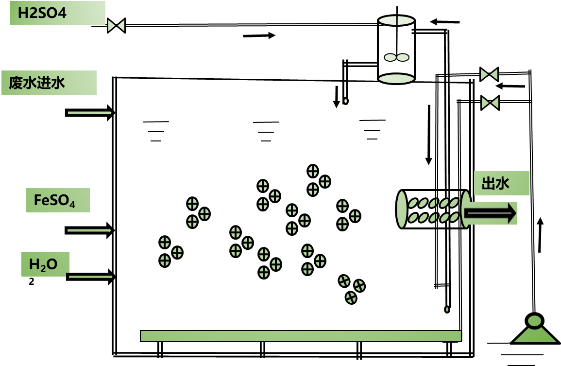 ◆與其他氧化工藝如相比,Fenton試劑(ji)氧化法(fa)具有(you)運(yun)行成本低、工藝簡(jian)單、操作簡(jian)變和(he)在常溫常壓下(xia)反應的特點。