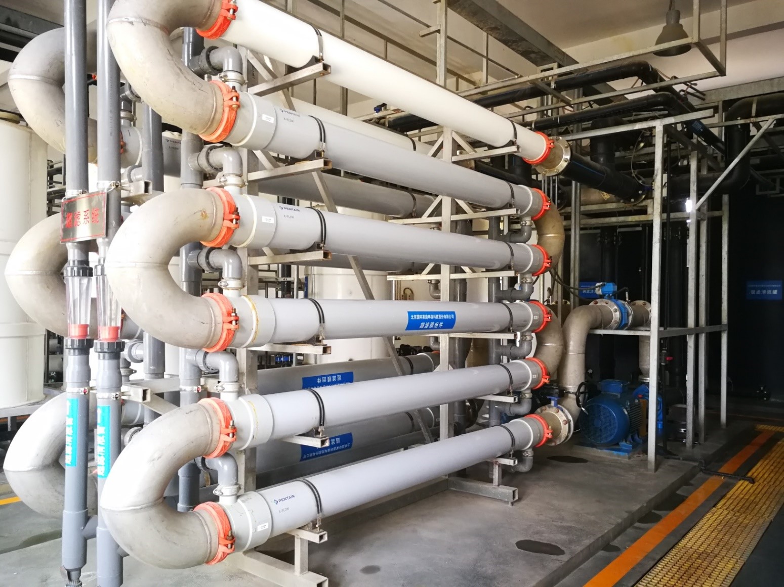 垃圾焚燒(shao)廠滲瀝液(ye)經過(guo)厭氧+膜生物反應器系統(tong)(MBR)后,出水無菌體和懸浮物,進入納濾(NF)系統(tong),膜(mo)組件(jian)采用(yong)螺旋卷式膜(mo)類型,具有結構簡單,造價(jia)較低(di),裝填密度較高,物料交換效果(guo)好的優(you)點。對(dui)滲(shen)瀝液的適應性很強,膜(mo)壽(shou)命(ming)延(yan)長到2年以上。