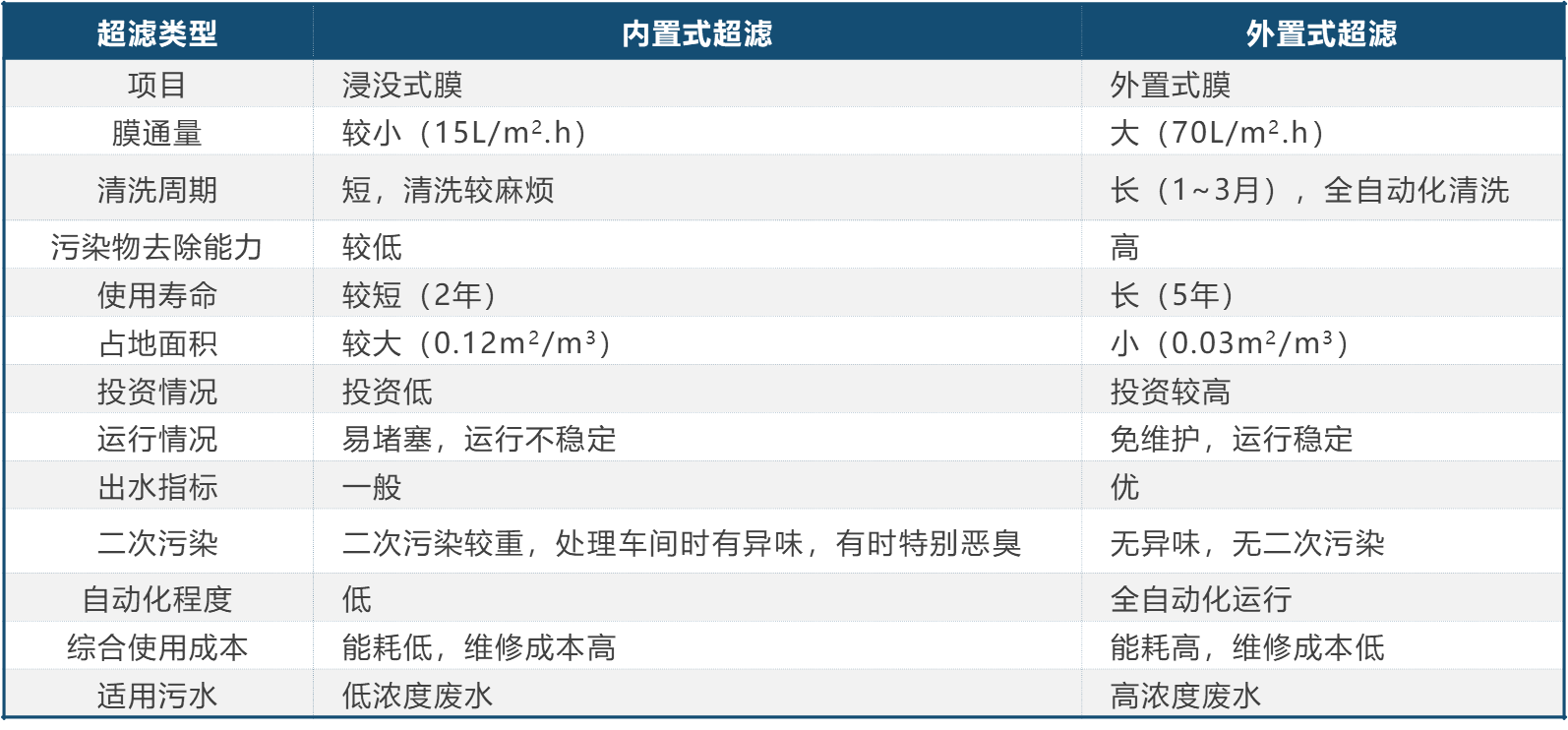 與傳統生(sheng)化處理工藝A/O相比,微生物菌體(即活性污(wu)泥(ni))通過(guo)超濾(lv)系統從出水中分離,確保(bao)大于(yu)0.02 毫米的(de)顆粒物(wu)、SS、異物、微生物和與COD相關的(de)懸浮(fu)物和有機(ji)物安全地截留在系統內(nei)。超濾(lv)清(qing)液(ye)進入超濾(lv)清(qing)液(ye)罐,超濾(lv)濃液(ye)回到反硝化罐,污(wu)泥濃度通(tong)過錯流式(shi)外置超濾(lv)系統的(de)連續(xu)回流來維持。