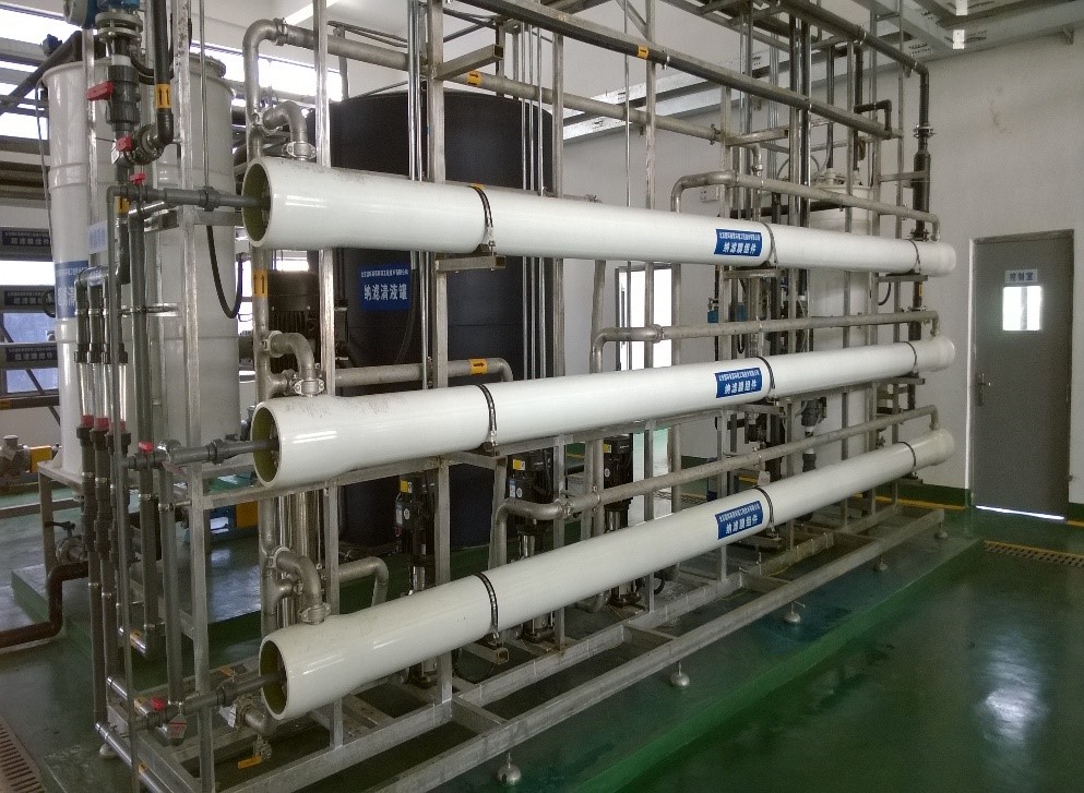 反(fan)滲(shen)透膜也(ye)屬于(yu)致密膜范疇,為卷式有機復合膜,最大優點是脫(tuo)鹽(yan)率高,出水水質(zhi)穩定。反(fan)滲(shen)透采用(yong)進口卷式反(fan)滲(shen)透復合膜組件,這種(zhong)膜對前處理要求相對較低(di),pH值(zhi)適應范圍(wei)廣(guang),便于進行化學清(qing)洗(xi),膜性(xing)能(neng)穩定,保持性(xing)好,并且藥劑清(qing)洗(xi)頻(pin)率低,一般(ban)為每月一次左右(you)。膜組件脫鹽率在(zai)80-98%以(yi)上。正常運(yun)行壓(ya)力在15bar-35bar左右,由于(yu)反滲透處理(li)的(de)是納濾(lv)清液(COD、BOD都很低),因(yin)此反(fan)滲(shen)透清(qing)液采(cai)得率≥85%。